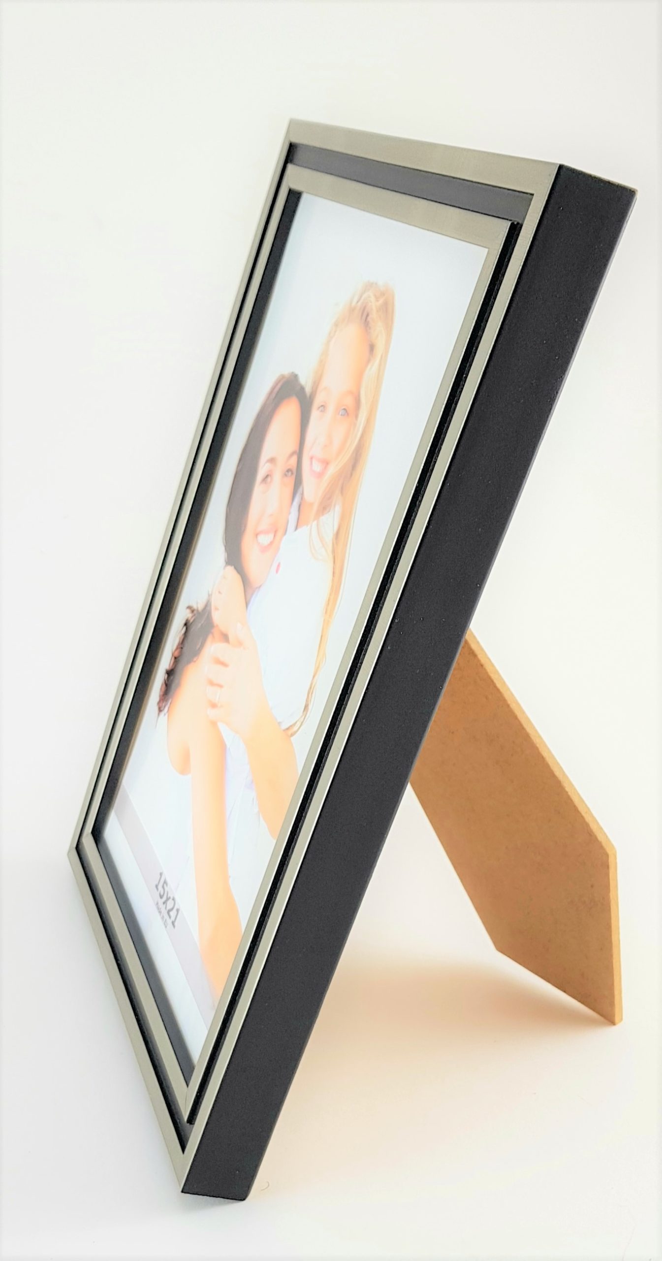 Jako tył ramki stosujemy 3,2 mm HDF  czyli po prostu pilśnie gładką z dwóch stron . Do formatu 21×29,7 montujemy dodatkowo podpórkę do postawienia ramki np na biurku. Ramka posiada zawieszkę do powieszenia jej na ścianie.