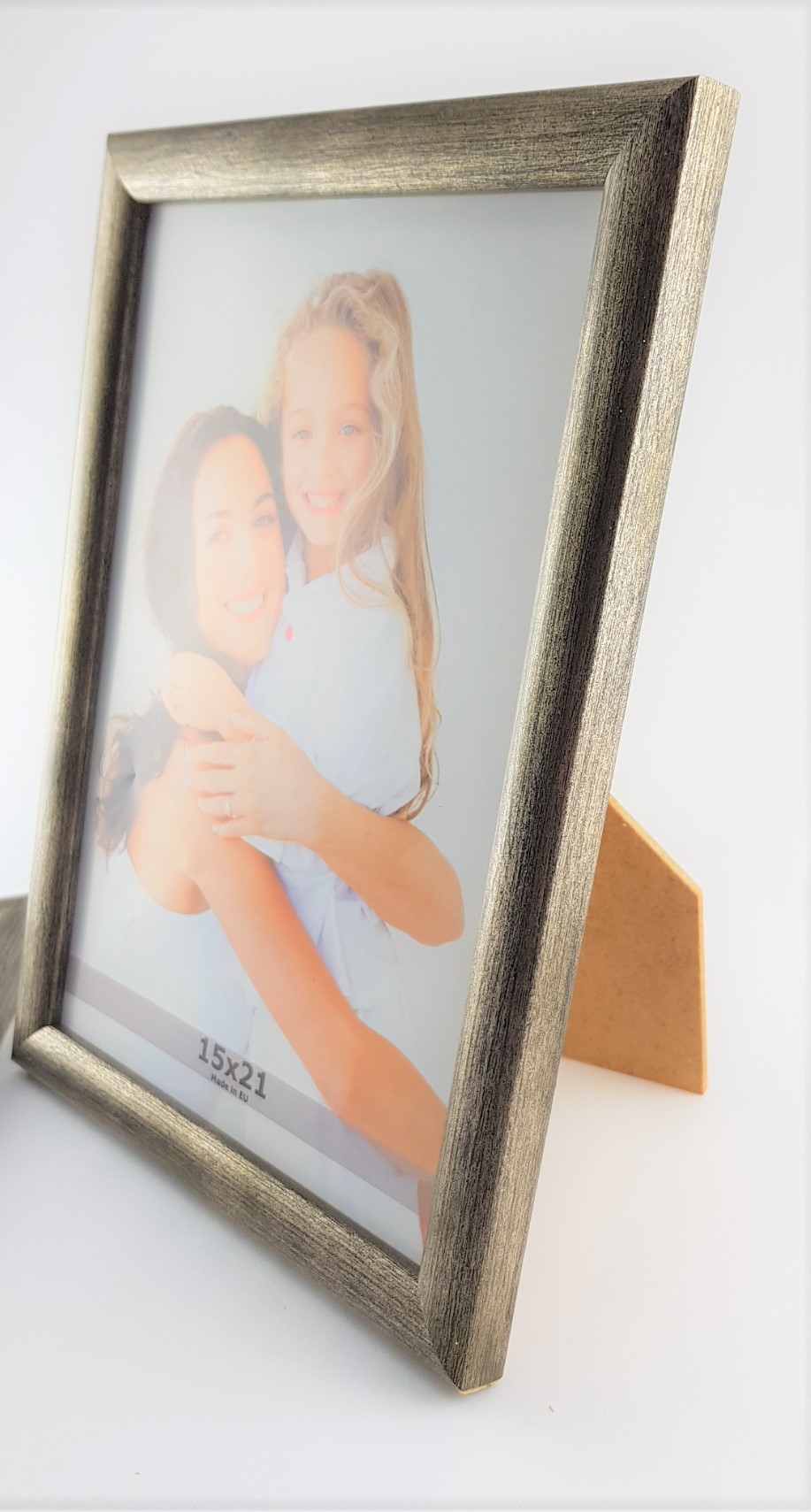 - Tył ramki wykonany jest z 3,2 mm HDF, czyli pilśnie gładkiej płyty z obu stron. Do formatu 21×29,7 dodatkowo montujemy podpórkę, umożliwiającą postawienie ramki na biurku. Ramka posiada również zawieszkę, umożliwiającą jej powieszenie na ścianie.